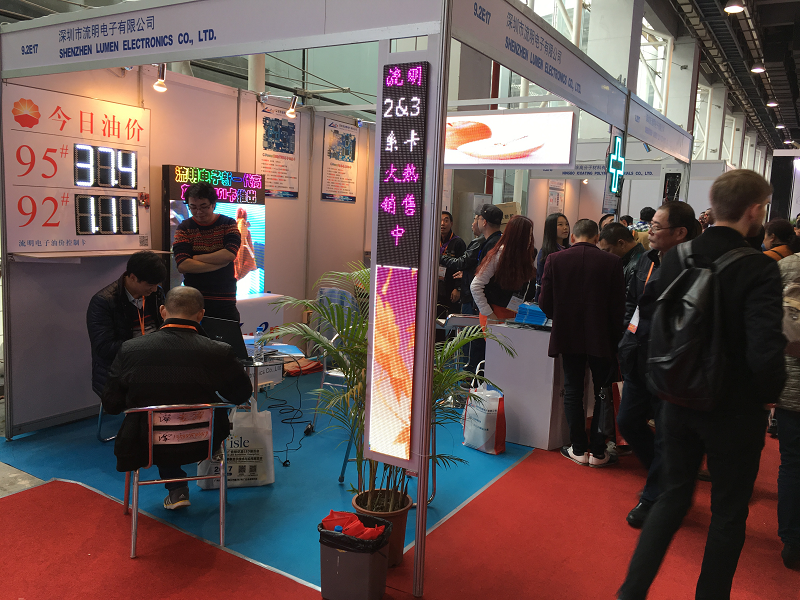 Shenzhen Lumen Electronics Co., LTD. was attended this exposition(Hall 9.2 booth E17),and shows the Lumen newly released series of high-grayscale, high-performance, cost-effective products--C-Power2 & 3 and 5 Series card , and mobile phone APP (Android and Apple systems) software, also have oil price card with APP control to modify oil price information and etc, obtain the customers' great attention and affirmation.